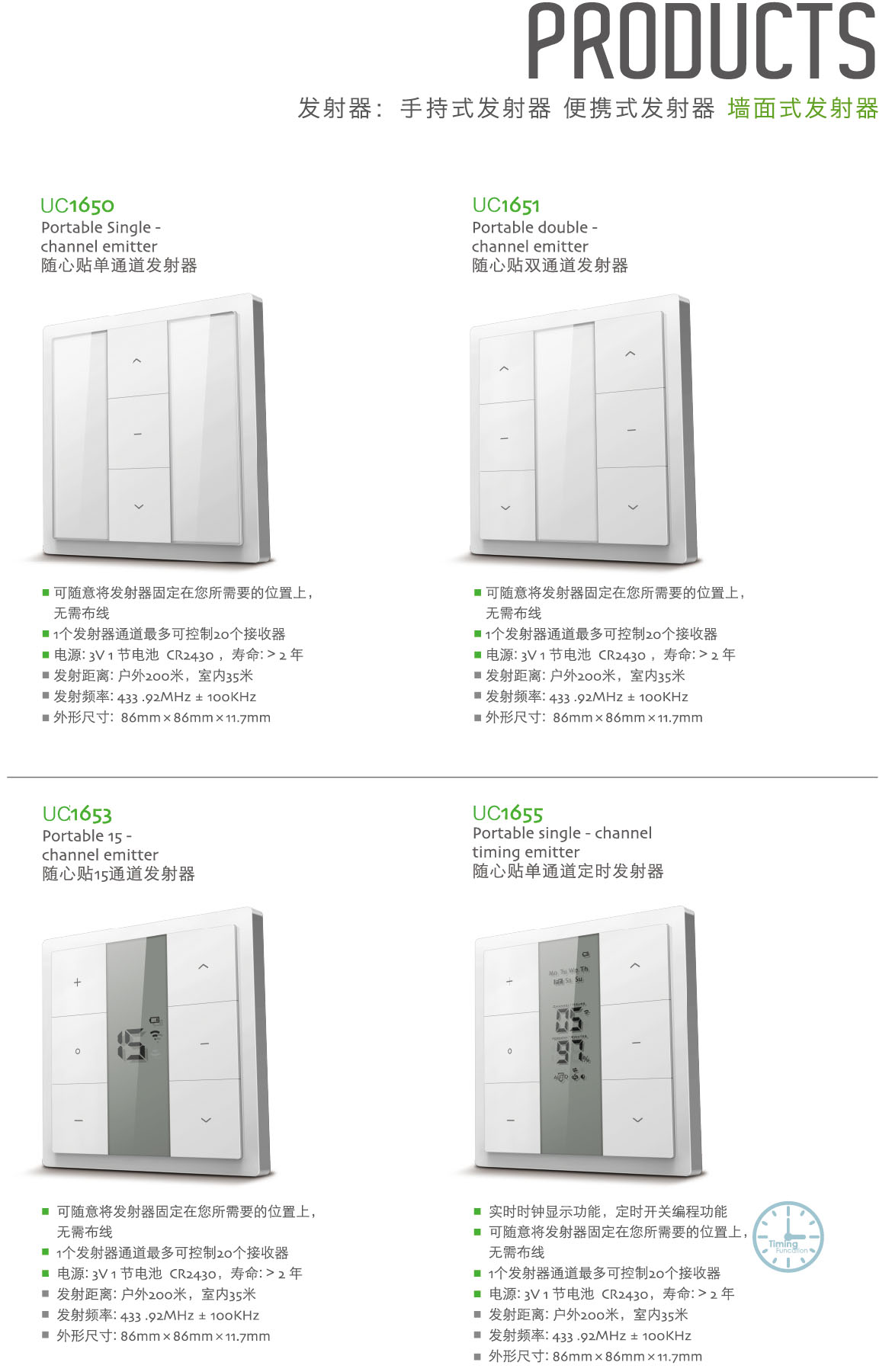 Portable single-channel emitter / 随心贴单通道发射器 Portable dual channel emitter / 随心贴双通道发射器 Portable 15-channel emitter / 随心贴15通道发射器