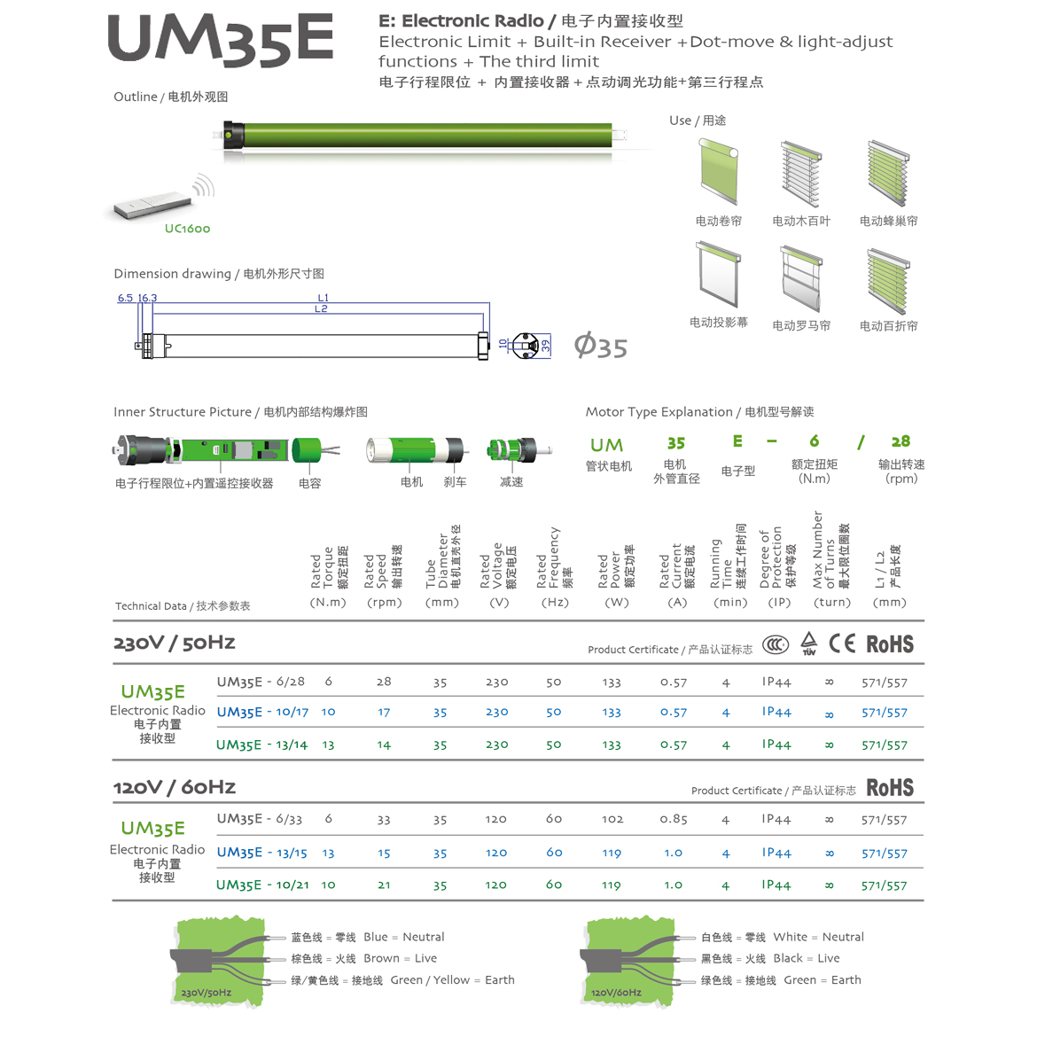E:Electronic Radio/电子内置接收型 电子行程限位+内置接收器+点动调光功能+第三行程点